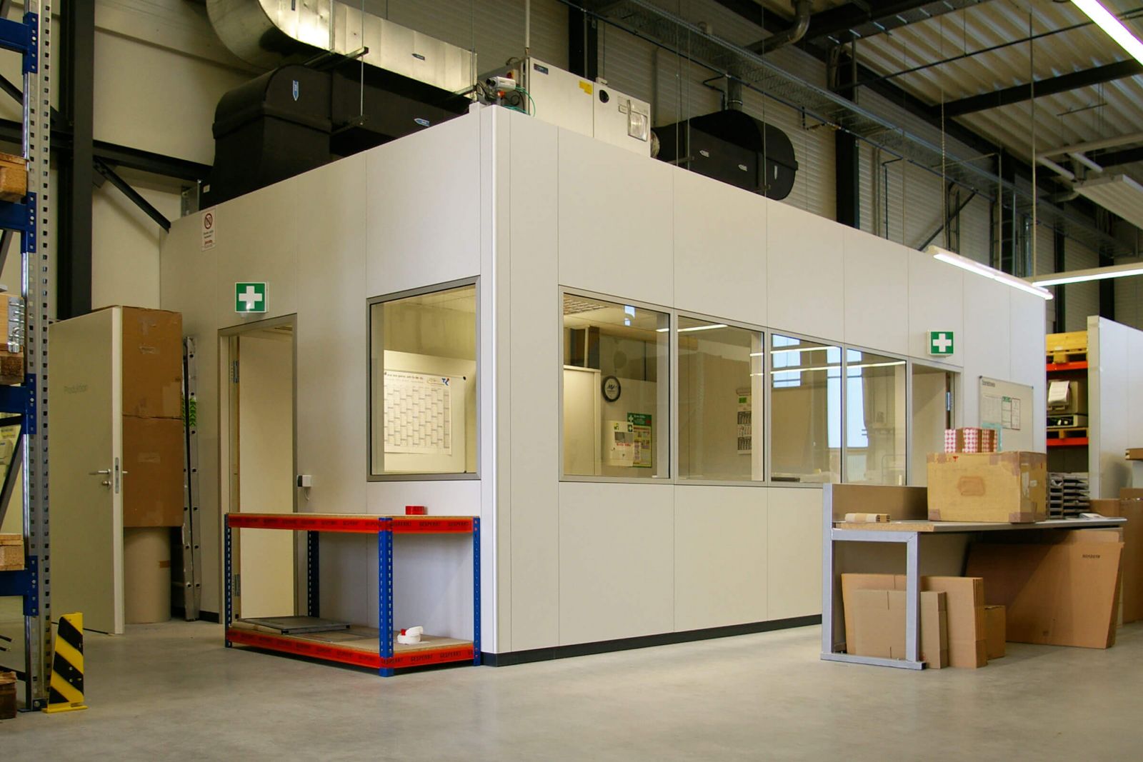 Als freistehende Trennwand, Wandverkleidung oder als Raum-in-Raum-System (Hallenbüro) möglich